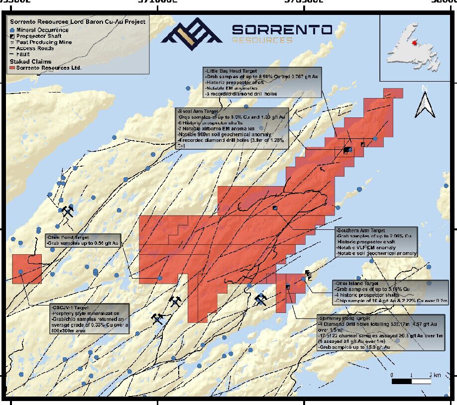 Sorrento Resources To Acquire Copper-Gold Lord Baron Project, Newfoundland