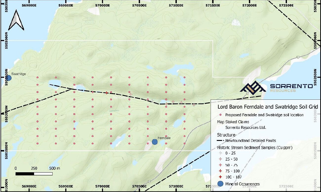 Sorrento Resources Announces Commencement of Soil and Rock Sampling on the Copper-Gold Lord Baron Project, Newfoundland